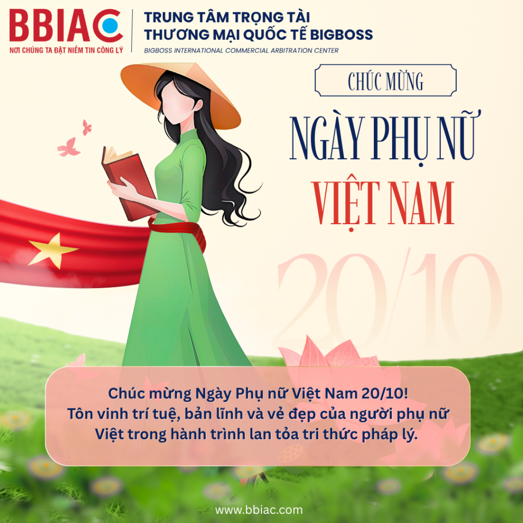 Nhân dịp Ngày Phụ nữ Việt Nam 20/10, Trung tâm Trọng tài Thương mại Quốc tế Bigboss (BBIAC) xin gửi tới toàn thể phụ nữ...