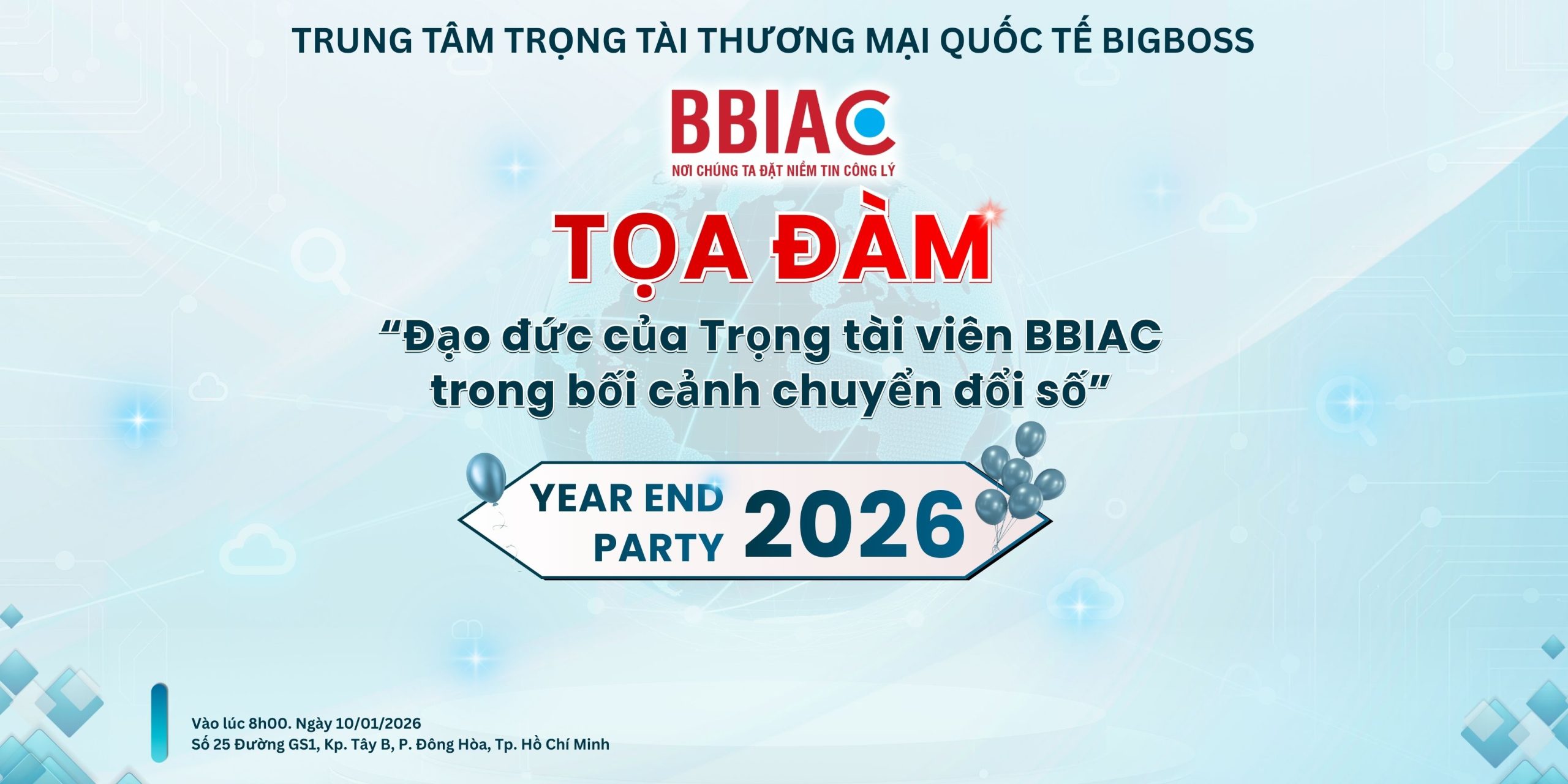 Trung tâm Trọng tài Thương mại Quốc tế BigBoss (BBIAC) chính thức công bố chương trình Tọa đàm khoa học đầu năm 2026 kết hợp với Tiệc Tất niên (Year End Party). Đây là sự kiện quan trọng nhằm tổng kết hoạt động năm 2025, đồng thời thảo luận sâu về những thách thức đạo đức pháp lý trong kỷ nguyên Trí tuệ nhân tạo.
